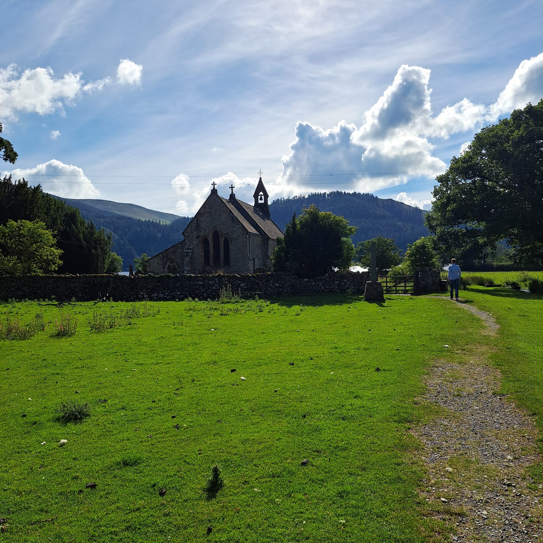 Bega’s kerk stond afgelegen aan de oever van een meer en was alleen te bereiken via een pad door de velden. We wandelden een kwartier door een verrukkelijk groen land. Rond imposante bomen graasden schapen. In heggen waren vogels in de weer. Een muurtje omringde de doden die rond de kerk in de stralende zon rustten. De kerk was open. Er was niemand te bekennen, maar het kinderhoekje, de bijbels, liedboeken en informatiefolders vormden het bewijs dat deze afgelegen kerk werd gebruikt als huis van gebed. Het kerkblad vertelde dat het kerkvolk op iedere eerste zondag van de maand en af en toe voor een doop- of huwelijksviering door de velden optrekt naar Saint Bega’s Church. De rest van de tijd staat ze daar in weer en wind aan de oever van het meer – stil en alleen, zoals Bega zich een deel van haar leven afzonderde als kluizenares.